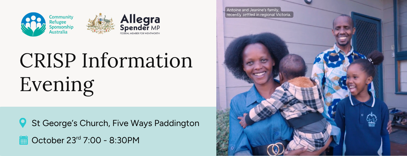 I am hosting an information evening with Community Refugee Sponsorship Australia to explain how you can get involved. I would love to see you there.