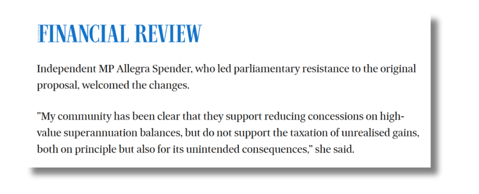 A community win on superannuation tax reform
