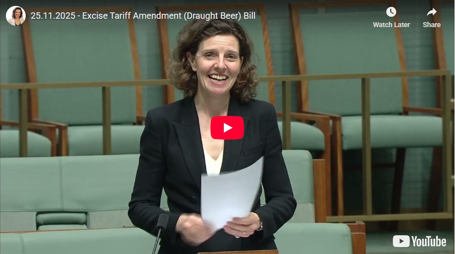 Ms SPENDER (Wentworth) (18:00): I rise to speak briefly on the Excise Tariff Amendment (Draught Beer) Bill 2025. While I support the bill in its efforts to provide some temporary relief to parts of Australia's hospitality sector, who are really struggling—namely, pubs and clubs—I want to echo many of the concerns expressed by some of my crossbench colleagues, speak briefly on another area of our excise regime and comment on a proposed ATO determination currently under consideration.