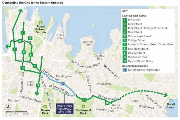 The Oxford Street Cycleway is a long-running project to create a new separated bi-directional cycle path along Oxford Street, connecting the Sydney CBD to Bondi Junction.