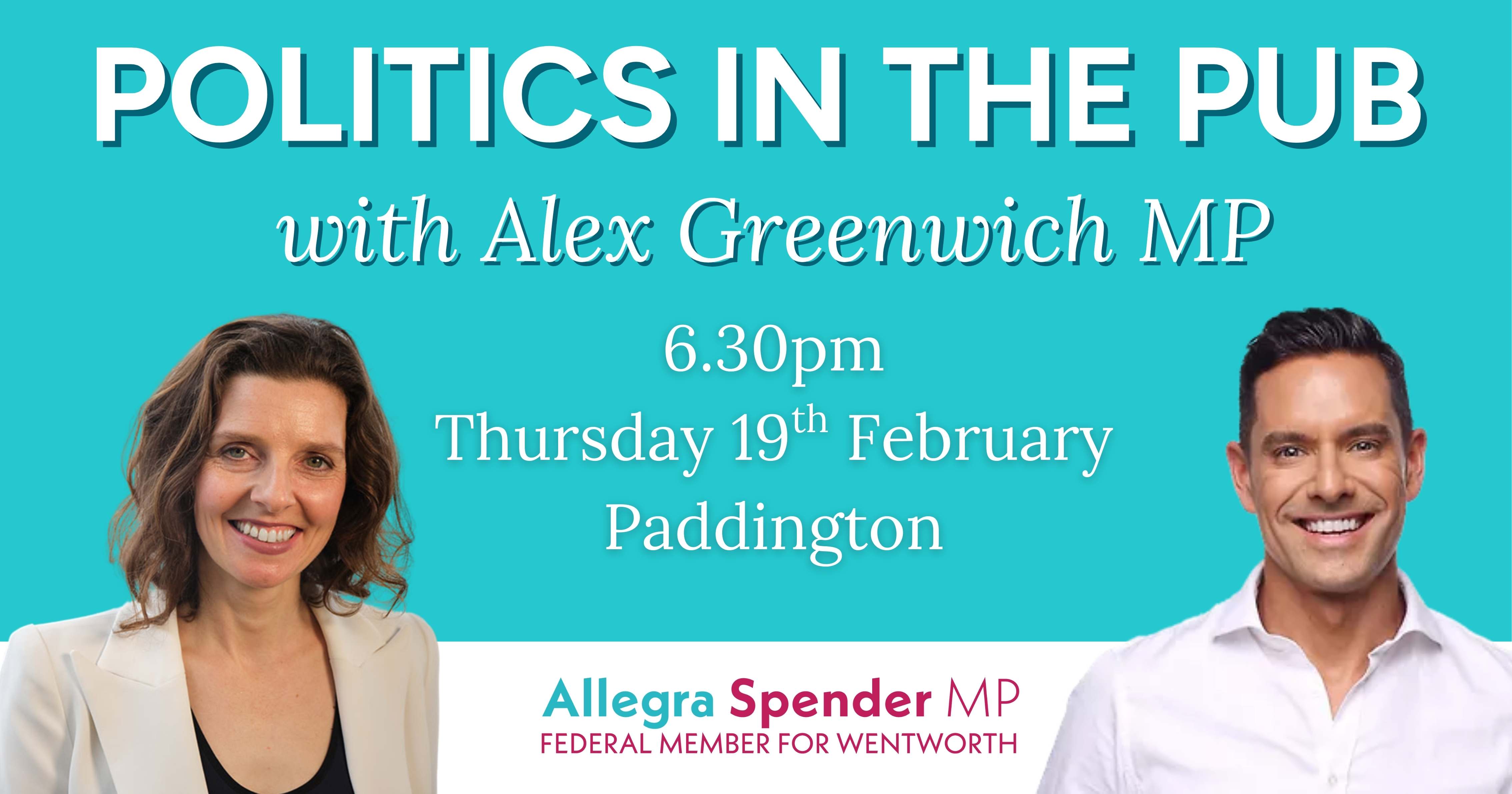 Join Independent Federal MP for Wentworth Allegra Spender, and State MP for Sydney Alex Greenwich MP to discuss all things community, what's coming up this year and priorities like housing affordability. and how we can continue to celebrate and protect our LGBTQIA+ communities with Mardi Gras happening soon.