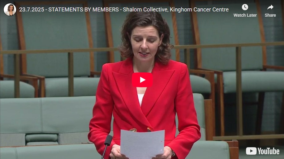 Trevor Tyne, a patient at Kinghorn, recently came to see me with his oncologist Dr Jenny Liu. I was so moved by the way that Trevor spoke of the kindness and care of the Kinghorn staff, and by both of his and Dr Liu's passion in ensuring that more Australians experience the lifesaving work of this centre firsthand. It particularly focuses on rare cancers, which equate to 25 per cent of cancer deaths, and this is an area that needs greater support.