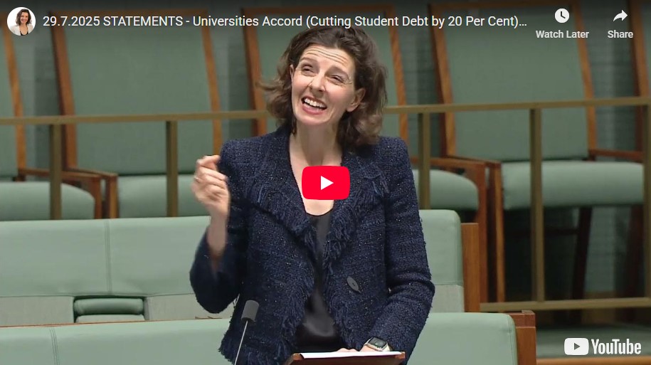 Ms SPENDER (Wentworth) (19:20): I rise to speak on the Universities Accord (Cutting Student Debt by 20 Per Cent) Bill 2025 that is in front of the parliament, and I rise to speak about Australian young people who are struggling at this time in ways that they haven't in previous generations. It goes to the heart of why this bill is important but also why other things are necessary as well.